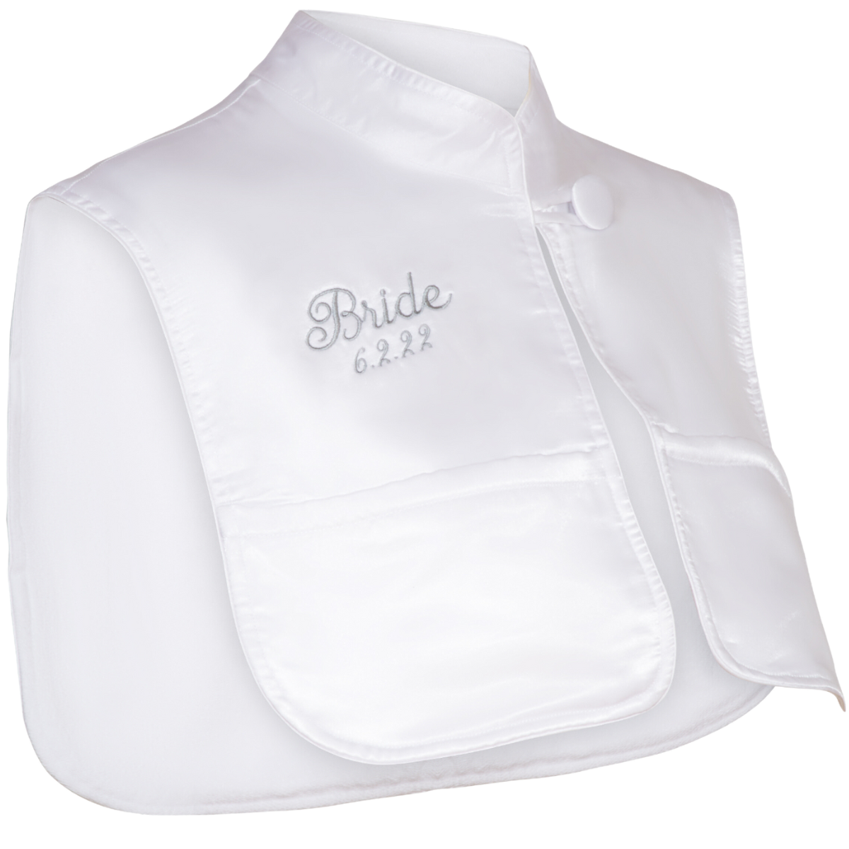 Embroider with a name, initials, or monogram; or with "Bride", "Mrs.", or your wedding date